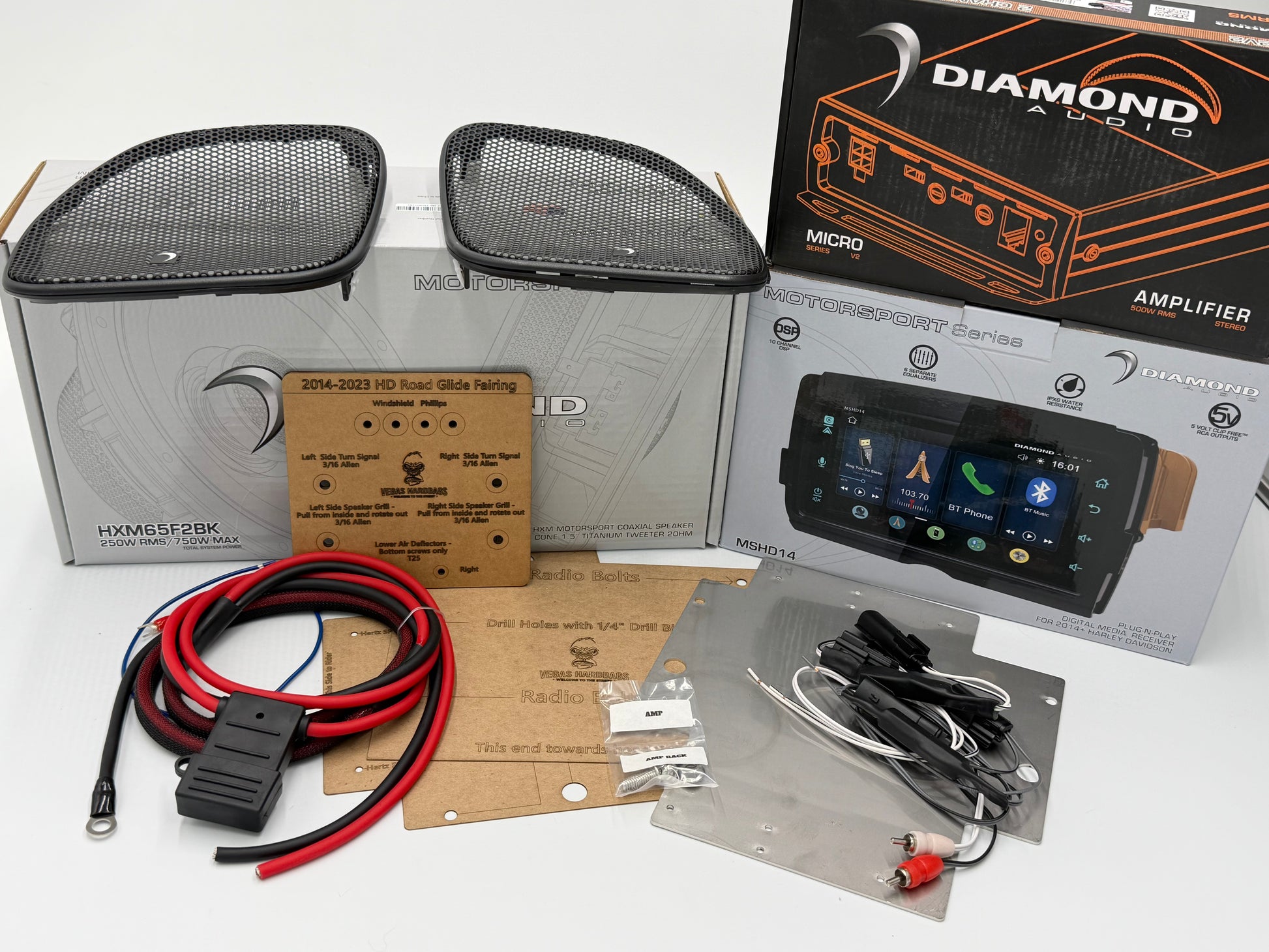 Vegas Hardbags Classic Fairing System with Radio. Built for 2014-2023 Harley-Davidson Road Glides, this package screams Street Sound with raw power, razor-sharp clarity, and tuned for the streets. At its core, the Diamond Audio HXM Black speakers feature the new oversized tweeter, delivering piercing highs and deep, rumbling mid-bass that make every street your personal stage.