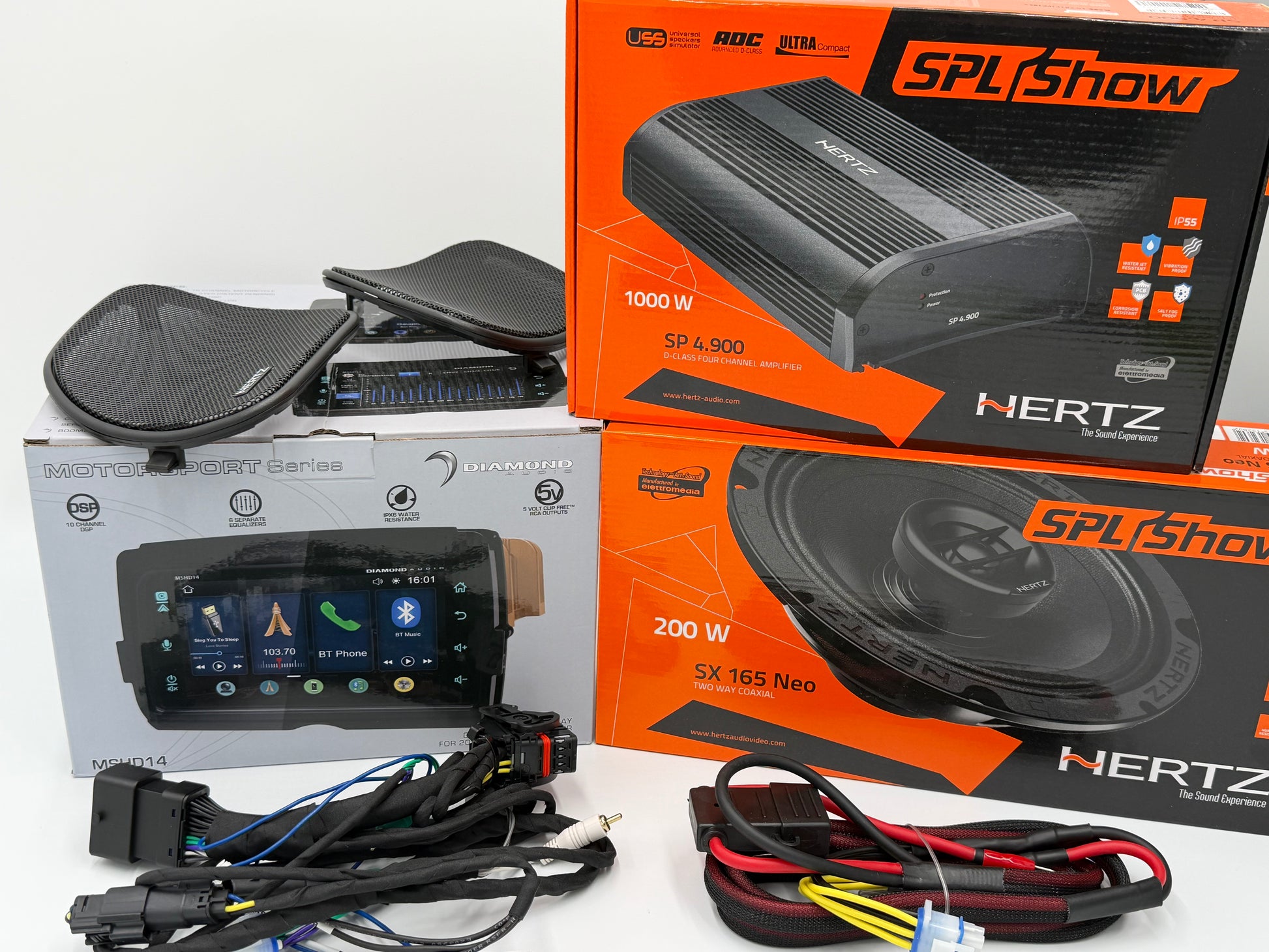 Powering the system is the Hertz SP 4.900 amplifier, offering pure Italian performance with precise control. Two open channels let you expand to saddlebag speakers later—no amp swap needed.