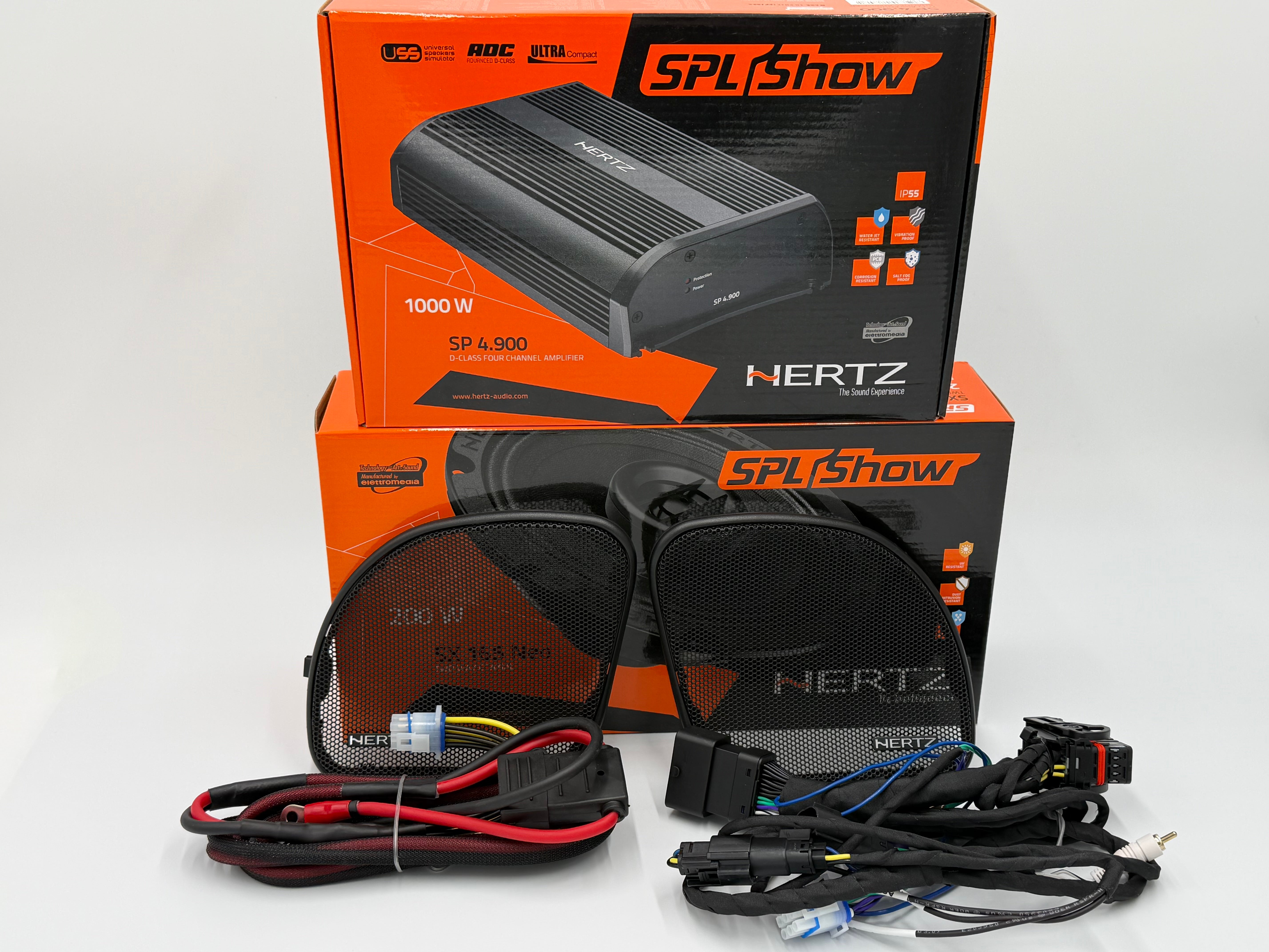 Powering the system is the Hertz SP 4.900 amplifier, offering pure Italian performance with precise control. Two open channels let you expand to saddlebag speakers later—no amp swap needed.