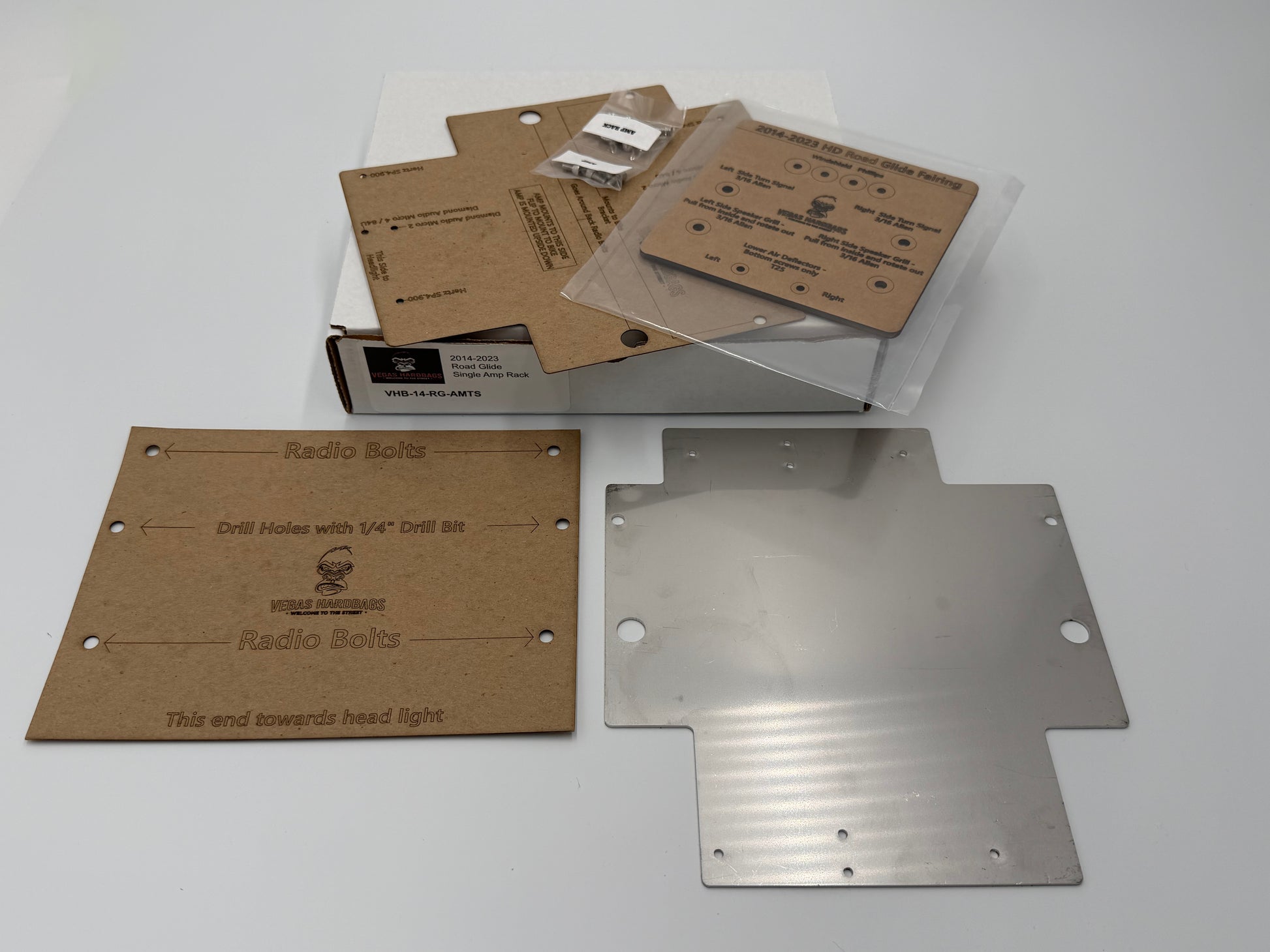 Installation is clean and secure with the Vegas Hardbags stainless steel amp mount and full plug-and-play wiring harness, ensuring rock-solid stability and effortless setup.